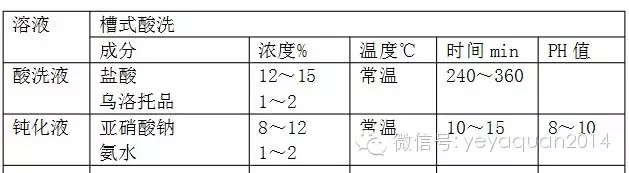 (5)二次酸洗。酸洗液配方同上。操作工藝要求為:常溫浸泡5min。